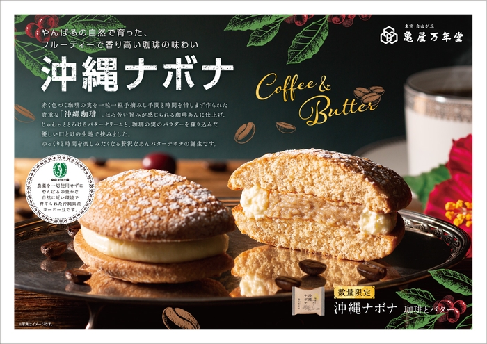 株式会社亀屋万年堂(本社・工場:神奈川県横浜市都筑区 / 総本店:東京自由が丘)は、国産素材にこだわった、あんバターナボナの新商品「沖縄ナボナ 珈琲とバター」(1個194円(税込)・常温販売)を2023年5月20日(土)より直販店舗(東京・神奈川28店舗)及び公式オンラインショップナボナ広場にて数量限定販売いたします。
