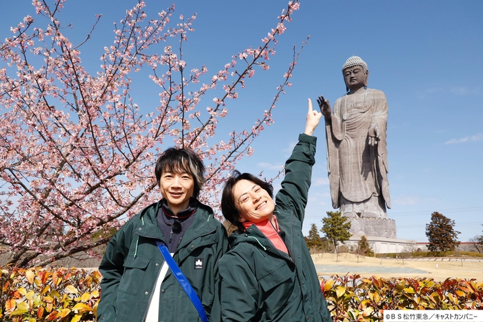 Season10の始まりにふさわしい茨城県牛久市にある「牛久大仏(うしくだいぶつ)」への祈願からスタート。いつもより早くゲストを迎えると、そこには初の後輩ゲストHiHi Jetsの髙橋優斗&猪狩蒼弥の姿が…!