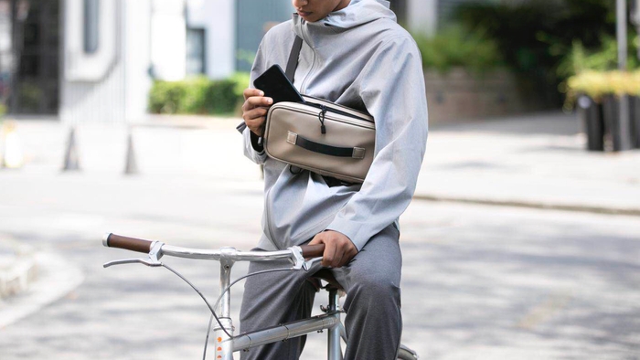 ストラップホルダーが4箇所に付いているので、スリングバッグ以外にも肩掛けのポーチの様に使うことができます。自転車に乗る際やタウンユースの利用シーンでもスマートな印象です。