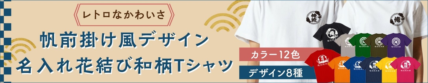 株式会社太陽(所在地:千葉県匝瑳市飯倉台28-11、代表取締役:片岡正徳)が展開する「おもしろTシャツの俺流総本家」では、伝統的な帆前掛け風デザインをかわいくアレンジした、名入れ可能な花結び和柄Tシャツを新発売いたします。