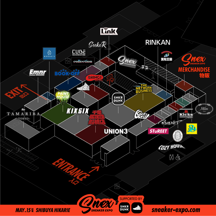 メインスポンサーを務めるスニーカーダンクやフェイクバスターズはもちろん、その他にも約30のブランドやショップが一堂に集い、それぞれのブースで豪華な企画をご用意しています。”来場者限定プレゼントキャンペーン”、”定価販売企画”など来場者の皆さんにお楽しみいただけるコンテンツが盛りだくさんの内容となっております。