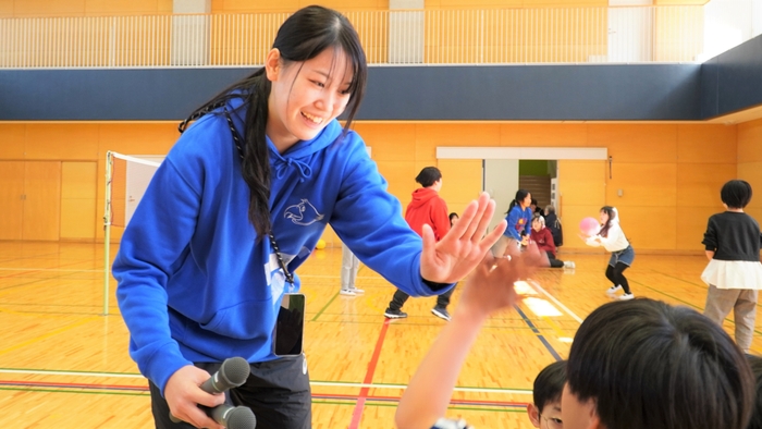 バレーボールに興味を持ってもらうことと、体を動かす楽しさを体験してもらうことを目的に企画しました。子どもたちの「出来た」という感情を大切にするため、子どもとの関わり方やゲーム内容にたくさんの工夫をしました。子どもたちをまとめることやそれぞれのレベルの差を上手く揃えるための工夫づくりなどの大変さを実感しましたが、小学校の先生方、大学の教職員の方々にご協力いただき、企画を創り上げる楽しさも学ぶことが出来ました。
