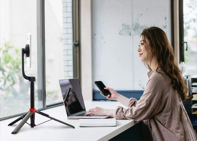スマートフォンは縦、横のどちらの向きでも取り付けが可能。SNS投稿、動画視聴、オンライン会議など、あらゆるシーンで最適なアングルが見つけられます。
