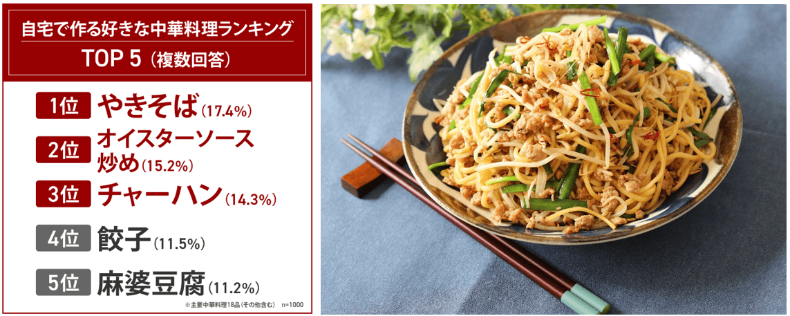 3.自宅で作る好きな中華料理 1位「やきそば」、2位「オイスターソース炒め」