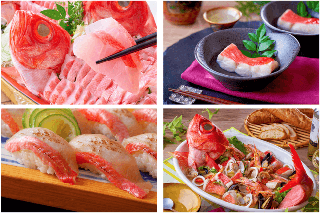 伊豆3宿では、名産の金目鯛を各宿の料理長が腕によりをかけたメニューでご提供します。冬を迎え脂が乗って旨味が増した金目鯛を舟盛りのお造りや、甘辛味の煮つけと一味違う、上品な美味しさが楽しめる「塩煮」でご用意。金目鯛から出た出汁の美味しさもご馳走のアクアパッツァなど、和洋バラエティ豊かなメニューで余すところなくお楽しみいただけます。