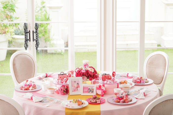 アフタヌーンティーのように美しく並べられたスイーツの数々は、デザートブッフェのように、気に入りスイーツを見つけたら“おかわり”のオーダーが可能。また、お客様のテーブル上で、ファッションドール 「バービー」の世界観を表現しており、席を立つことなく、安心・安全にお過ごしいただけます。