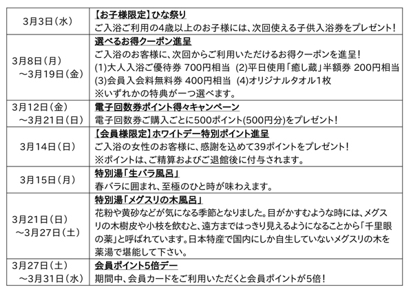つかしん天然温泉「湯の華廊®」春のお客様大感謝祭開催