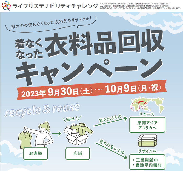 使わなくなった衣料品をリサイクル!9/30(土)~10/9(月)まで、近畿圏3店舗でライフ初の「衣料品回収キャンペーン」を実施!
