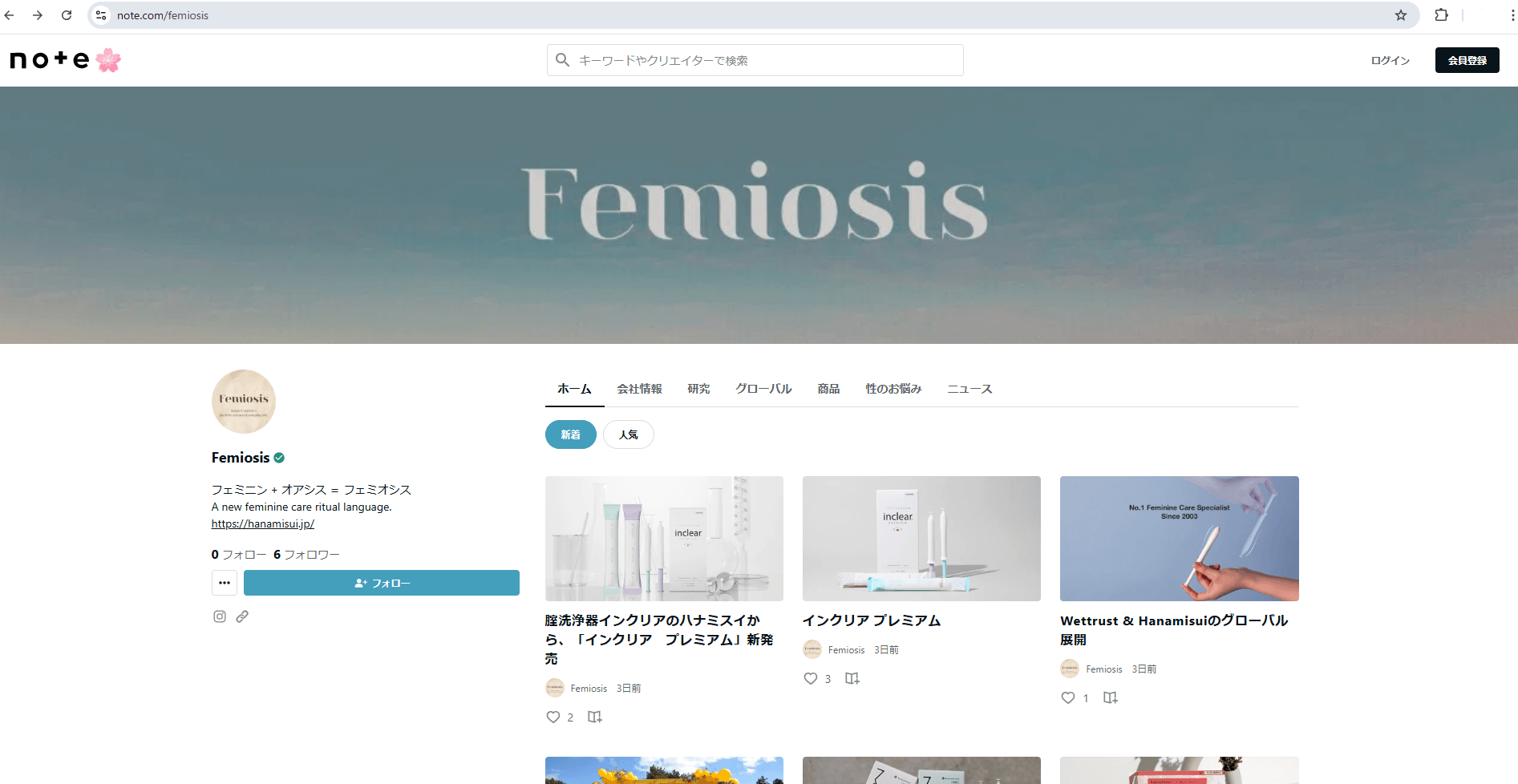 ハナミスイのnoteは女性のためのオアシス、という意味を込めたフェミオシス(Femiosis)。女性のみなさまがより快適で健康的な毎日を送るための有益な情報を提供し、女性のサポートを行ってまいります。