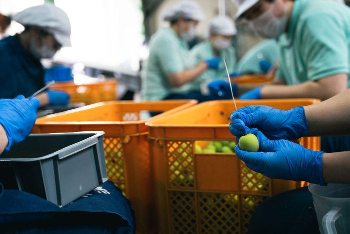 「浦霞の梅酒」の梅は地元・宮城にこだわる。2.6tの梅のヘタを手作業で取る