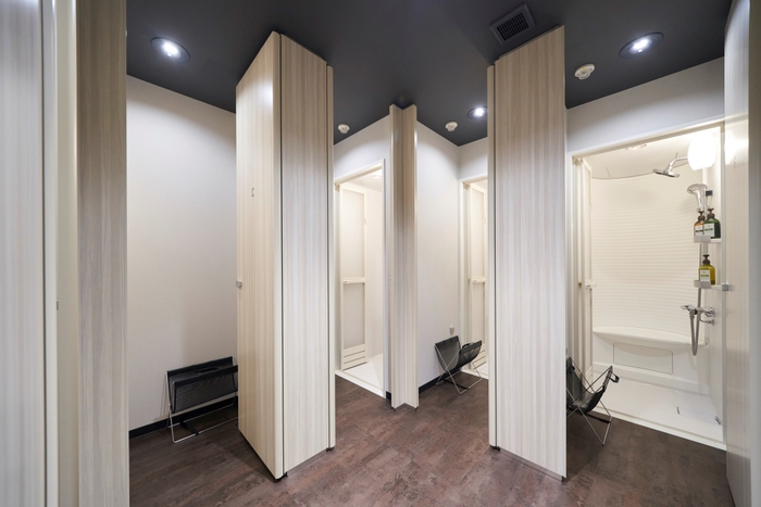 シャワールーム(2階-男性専用、3階-男女共用、4階-女性専用)には、シャンプー・コンディショナー・ボディソープ完備。