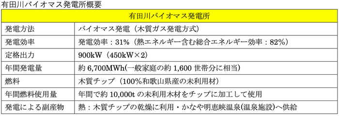 また、有田川町では、環境と経済を両立したエコなまちづくり「有田川エコプロジェクト」の一環として「再生可能エネルギー導入促進」を進めています。有田川バイオマス発電所を基軸に、再生可能エネルギーの普及、林業の活性化、温浴施設での熱利用、農業の活性化、木質燃料の地域利用などの幅広い分野で、「有田川エコプロジェクト」へ貢献します。