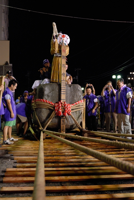 (曳き手受付:19:30~20:00)なお、曳き手参加者には先着230名様に「石曳オリジナルタオル」と「夜店お買物券(500円分)」をプレゼント!!