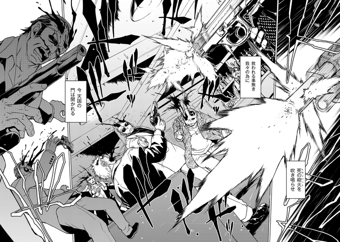 そうした不安定な情勢で名を揚げる殺し屋「踊る死神《ダンスマカブル》」。“狙われたが最後、標的もろ共皆殺し……”という不穏な噂以外、素性も目的も謎に包まれた殺し屋は、跡目騒動に揺れるとある組織を襲い───。