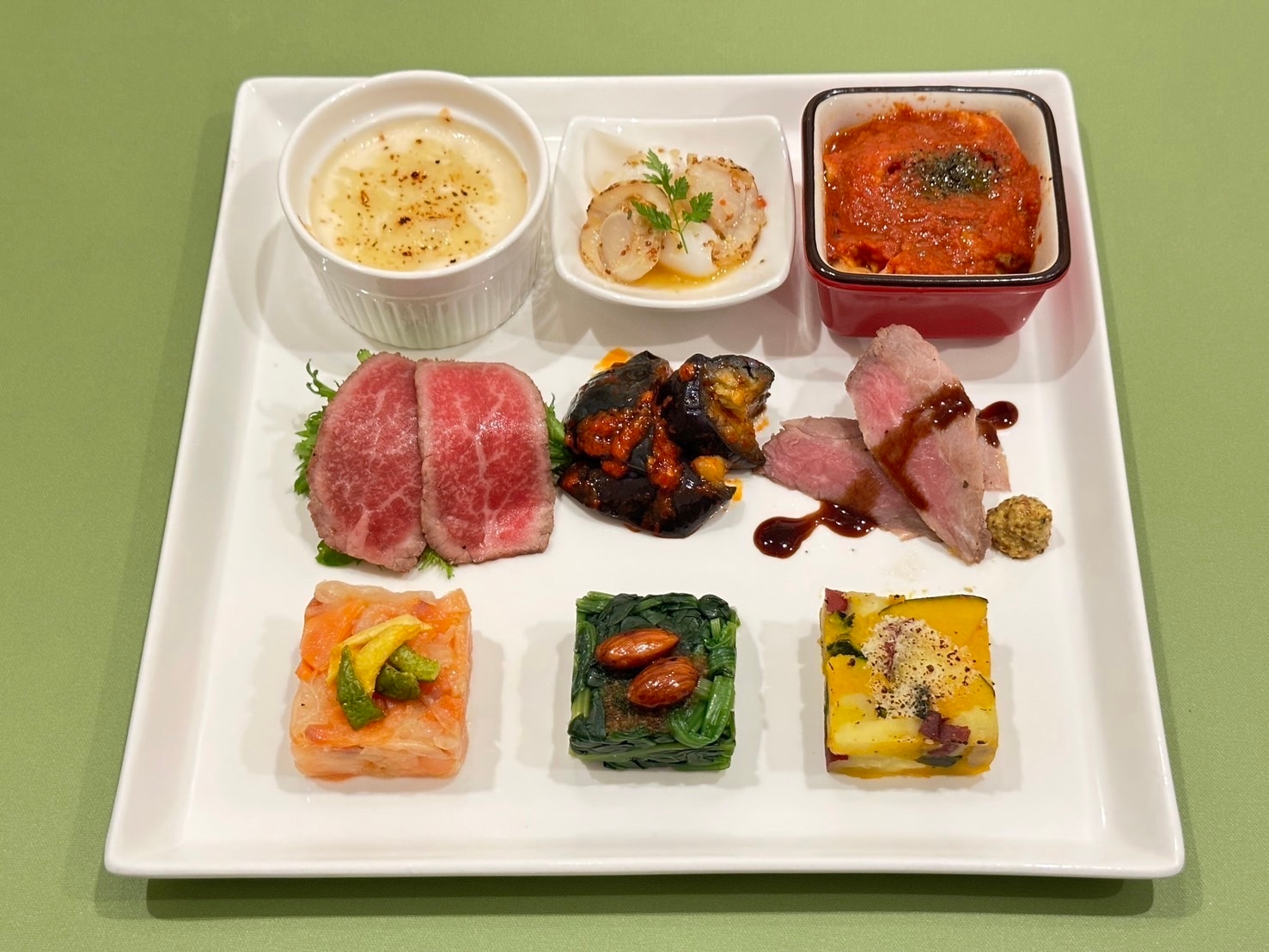 メニュー内容:季節野菜キューブ、和牛、銘柄豚、鶏肉トマト煮、魚介、