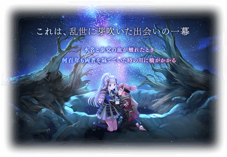 本イベントでは、戦国時代に生きた「水名露(CV.羊宮妃那)」と「千鶴(CV.立花日菜)」が凶作を発端とする争いの中で擦れ違いながらも心をひとつにして戦うストーリーとともに進行するストーリークエストをプレイできます。