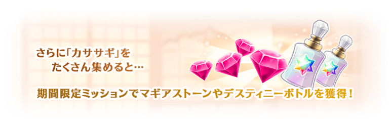 期間限定ミッションを達成することでマギアストーンや「オーバーリミッター」「デスティニーボトル」「レインボーオーブ」「マギアチップ」を獲得できます。