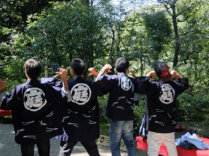 (2)フォトスポット:六義園特製ちょうちん片手に法被で記念撮影 ※雨天中止