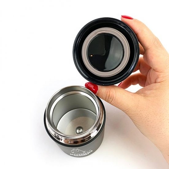 真空のミニスープボトルです。ブラックマットの質感が男性にもお使いいただけるアイテム。プレゼントにもいかがでしょうか?