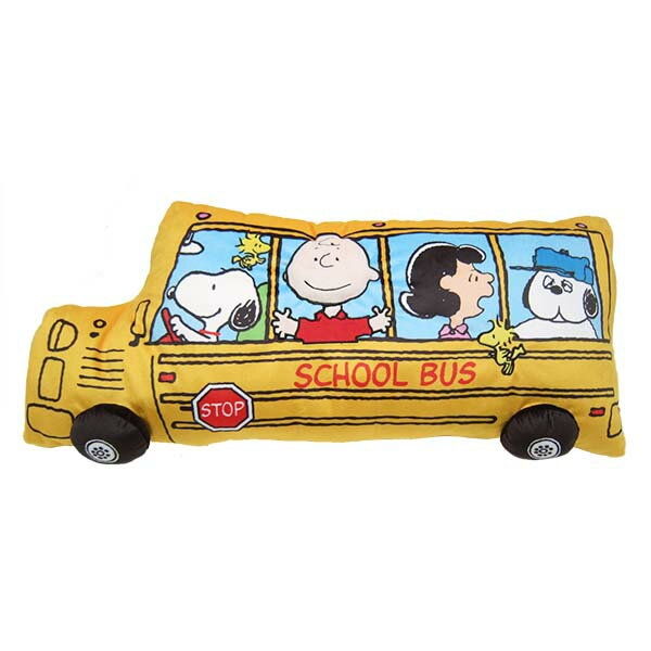 1つ目は、スクールバスのクッションです。運転手はなんとスヌーピー!ルーシーやオラフの顔も見えますね♪みんな楽しそうです。ビタミンカラーの黄色は、元気をもらえますよね。