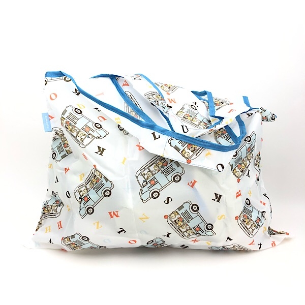 2つ目のご紹介は、ショッピングバッグです。スクールバスのデザインに、カラフルなアルファベット文字が散りばめられているんです。楽しそうなスヌーピーたちの様子が浮かびますね♪
