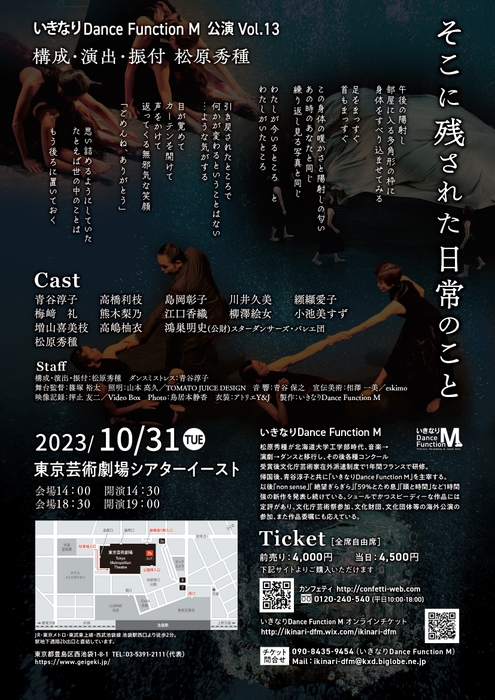 いきなりDance Function M vol.13『そこに残された日常のこと』が2023年10月31日 (火)に東京芸術劇場シアターイースト(東京都豊島区西池袋1-8-1)にて上演されます。