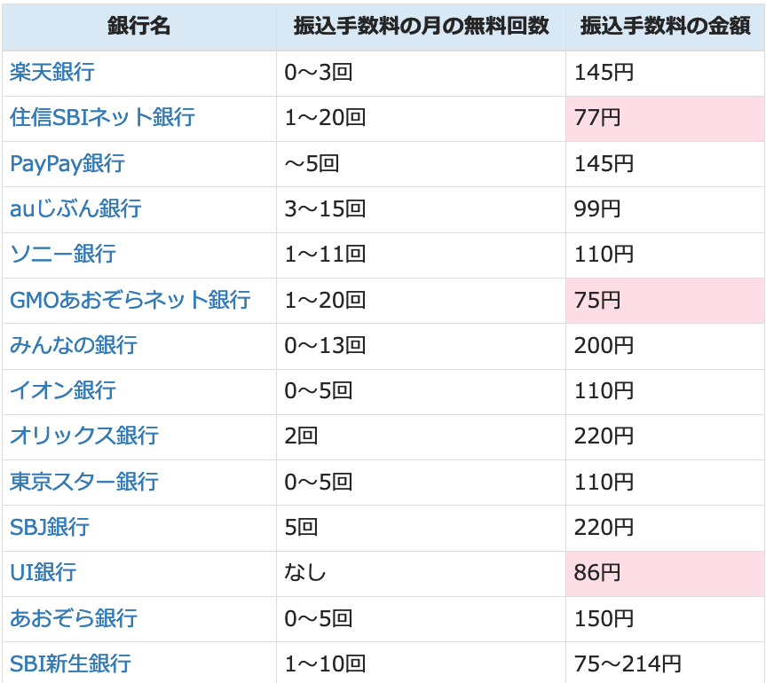 ネット銀行ATM手数料14社比較表【2024年10月】