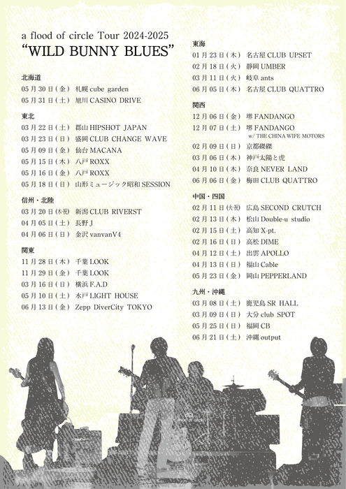 今年でメジャーデビュー15周年を迎えるa flood of circleが、完売御礼となった日比谷野音公演でリリースを発表した今作。実に13枚目となる今回のフルアルバムのタイトルは、『WILD BUNNY BLUES / 野うさぎのブルース』。