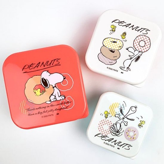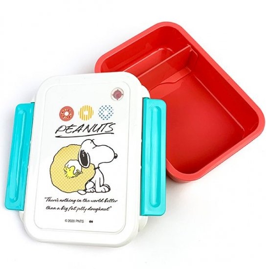 大きなドーナツがデザインされた、スヌーピーのランチボックスです。