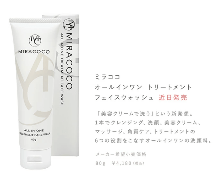 以前から新たな商品を開発する為に「保湿吸着テクノロジー」の開発研究をしており、何度も試作を繰り返したすえ、技術の開発に成功したと発表した。その技術を用いてミラココブランドで早くも第3弾となる、まるでミラクルがココにあることを実現したかのような美容クリーム洗顔料、これ1本で6役、洗顔でメイクや毛穴の汚れを落としながらも保湿が出来る夢のような製品『オールインワン トリートメント フェイスウォッシュ』を発売することが決定。デビュー日はTVでの先行販売となり、国内業界最大手といわれるTV通販専門チャンネルのショップチャンネルにて、数量・期間限定価格にて販売する。