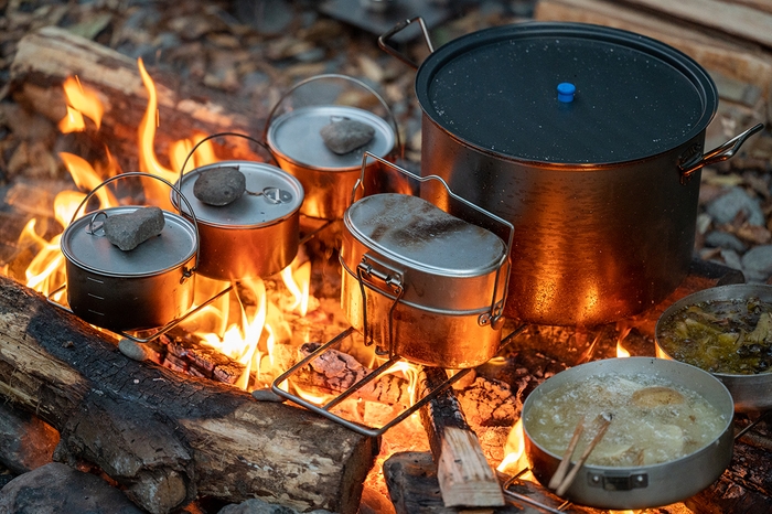 2合炊きの小さめの飯盒はソロに丁度良いサイズ感です。ハンドルの長さはパッキングしやすいように考えられた長さに設定。飯盒の独特な形状はバックパックへの収まりが良いので、山行用のクッカーとしてもおススメな飯盒です。