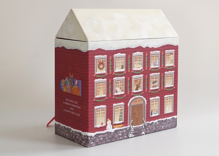 内容:雪の積もった可愛いアパートメント型のアドベントカレンダーの引き出し全てに、可愛らしい30g蜂蜜を詰めました。クリスマスまでの1週間毎日引き出しをあけて、何がでてくるかワクワク。美味しく楽しくカウントダウンしましょう!