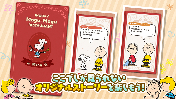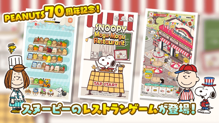 PEANUTS70周年記念 新作スマートフォンゲームアプリ/ PEANUTSの世界観を題材とした食材パズル&レストラン運営ゲーム