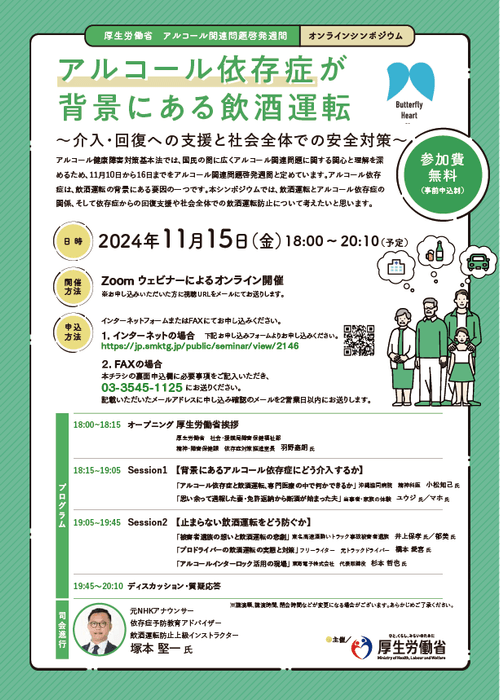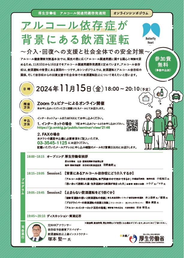 厚生労働省オンラインシンポジウム「アルコール依存症が背景にある飲酒運転」に東海電子代表取締役 杉本が登壇します