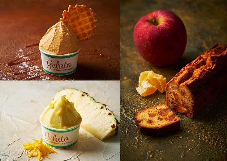 リーベルホテル人気のジェラートからは冬の食材や寒い季節に合う濃厚な風味が魅力の2種が登場。「塩キャラメル」は100%自然海塩のゲランド塩を使用。ほろ苦いキャラメルの香りと濃厚なミルクの味わいをお楽しみください。「柚子パイナップル」は柚子の爽やかな香りとパイナップルのジューシーな味わいが魅力。アクセントに入れたライムの皮が味を引き締めます。また「りんごのパウンドケーキ」はたっぷりのバターでキャラメリゼした旬のリンゴを生地に混ぜ込み、しっとり焼き上げました。ほろ苦さの中にあるリンゴの爽やかな香りをお楽しみください。