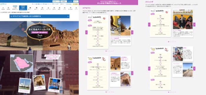 インフルエンサー2 名を起用した大人の女子旅をテーマとしたサウジアラビアの特集ページを制作しました。特集ページでは個人旅行でもわかりやすいように旅程案を作成し、現地で役立つ最新の観光情報を発信していきます。