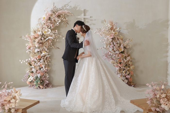 これからの未来を歩むおふたりの幸せを表現するお花が背景を彩ります。