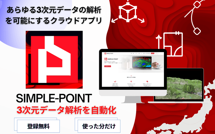 APEX株式会社(本社:東京都渋谷区、代表取締役社長:下戸 優輔、以下APEX)は写真や点群データ解析を依頼することができるクラウド型プラットフォーム「Simple-Point(シンプルポイント)」の提供を11月14日から開始いたします。本プラットフォームを利用することによりドローンで撮影した写真や点群データ、ハンディースキャナーなどにより取得した点群データの解析を自動化することが可能となります。取得したデータをアップロードすることにより業界最安クラスの価格帯で⾼品質な成果物をご提供します。