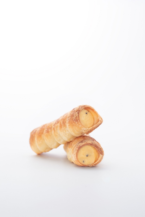 千葉県産さつまいもを、ふんだんに使ったコルネ。さつまいもの自然の甘さを生かし、なめらかに仕上げたクリームの深い味わいに、ゴマの風味と食感がアクセント。船橋東武と赤福 五十鈴茶屋が当催事のために共同企画した限定品です。