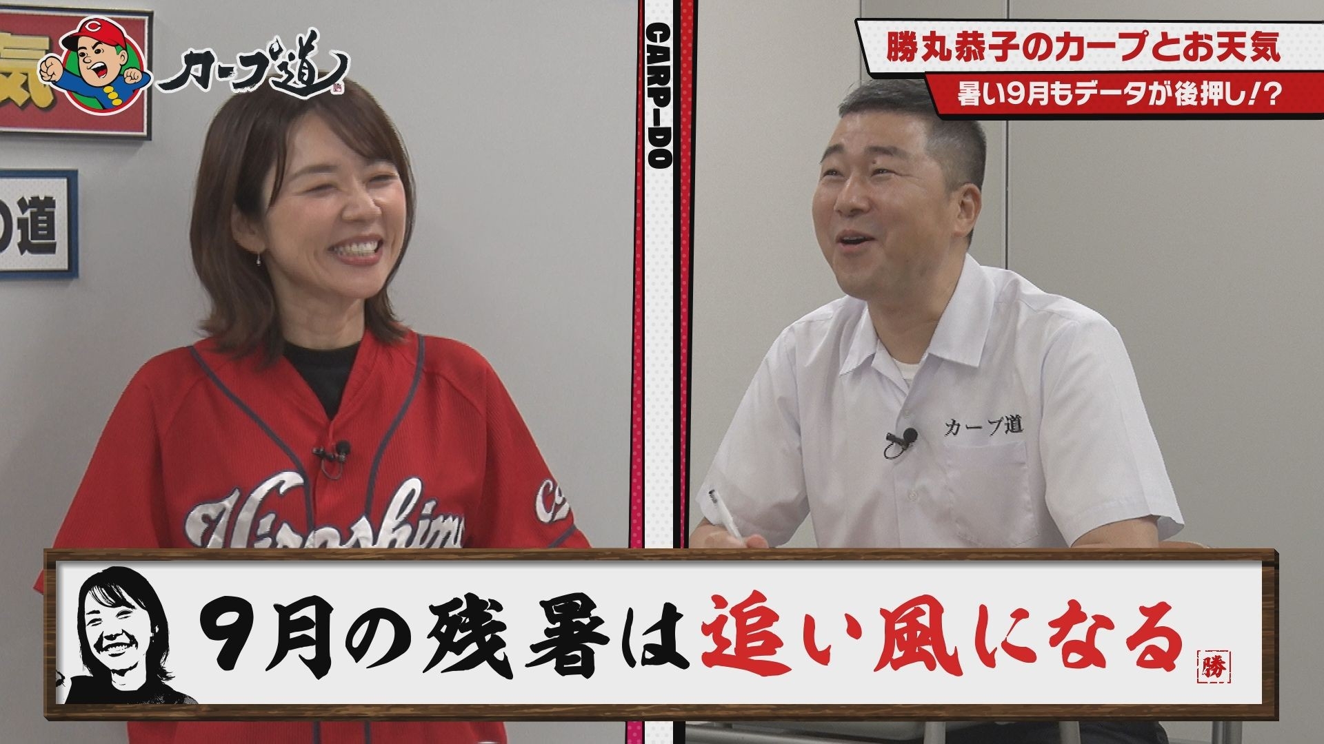 いよいよペナントレースも大詰め!今回は、真夏の屋外球場・ズムスタで気になる暑さについて、カープ大好き気象予報士の勝丸恭子先生が天気と勝率の関係を楽しく解説!