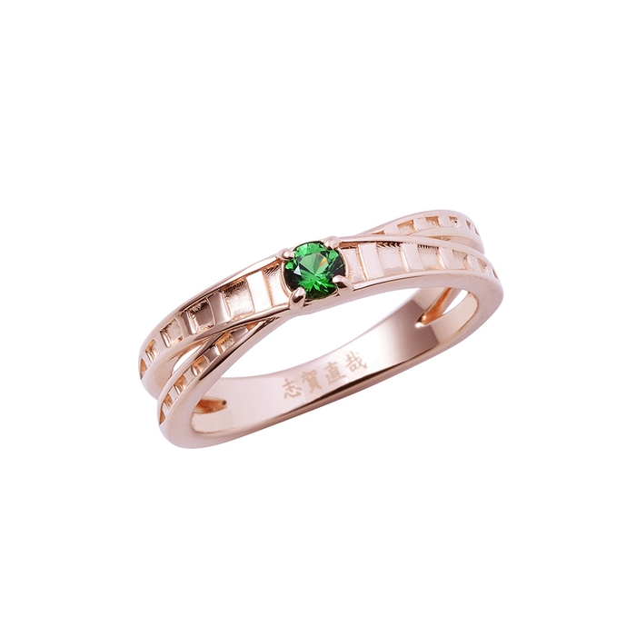 ピンクゴールドコーティングを施した表面にはイメージカラーストーン、内側には名前を刻印しました。
