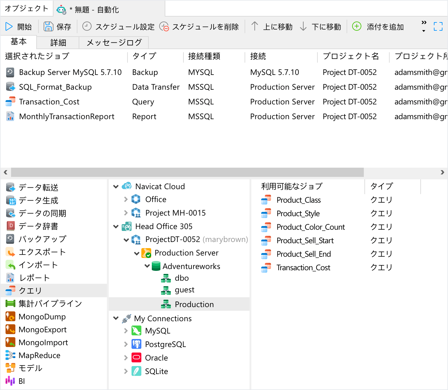 Navicat は、業界をリードするデータベースの管理と開発を行うソフトウェアです。そのトップ製品の1つであるNavicat Premiumは、1つのアプリケーションから MySQL、Redis、PostgreSQL、SQL Server、Oracle、MariaDB、SQLite、MongoDBデータベースに同時に接続することができます。また、Amazon RDS、Amazon Aurora、Amazon Redshift、Amazon ElastiCache、Microsoft Azure、Oracle Cloud、Google Cloud、MongoDB Atlas、Redis Enterprise Cloudなどのクラウドデータベースと互換性があり、さらにNavicat PremiumはGaussDBおよびOceanBase データベースとも互換性があります。Navicatを用いることで、データベースの構築、管理、保守を迅速かつ簡単に行えます。