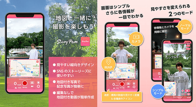 株式会社moegiは、スマートフォンの位置情報とカメラ機能を活かし、現在地マップとカメラ映像を簡単に合成できるアプリ「StoryPam(ストーリーパン)」を開発・リリースいたしました。