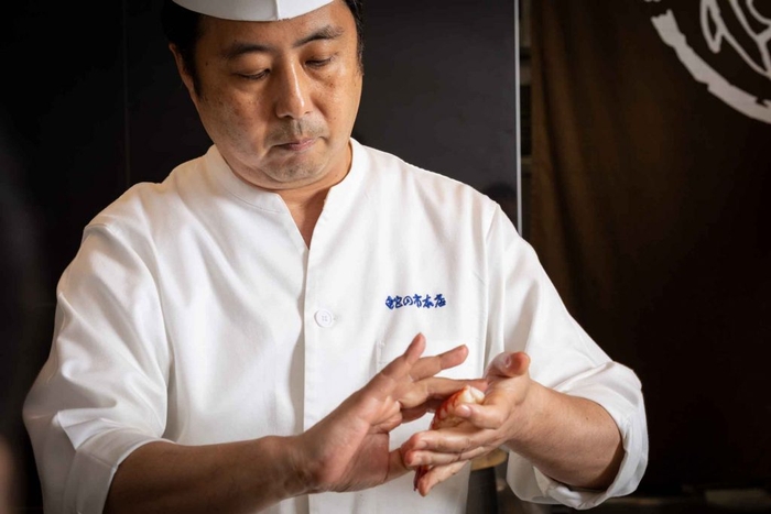 日本橋に魚河岸があった1889 年に屋台の鮨店として創業した「蛇の市本店」は、創業時から変わらぬ味を守り続ける煮穴子の握りなど、砂糖を使わない赤酢の酢飯が特徴の江戸前鮨です。この催しでは、「煮穴子の握り」と星のや東京オリジナルの升を使用した「特製ちらし」の提供とあわせて、「変えずに変える」という店主の想いのもと、100年以上続くお店の文化やこだわりを語ります。