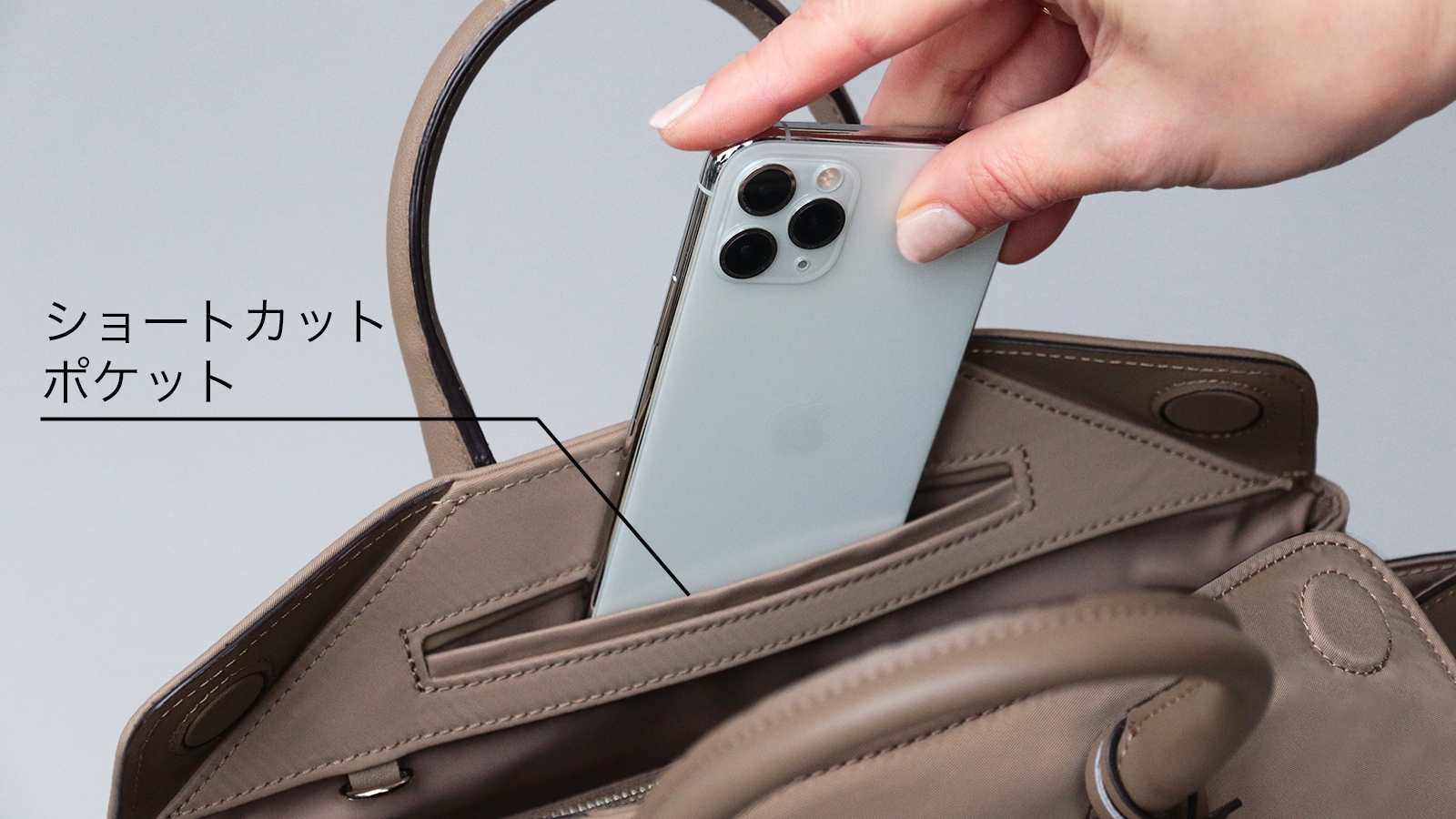 そのほか、開口部の開け閉め不要でスマホなどを取り出せるショートカットポケットや、バッグの底板にカードやパスポートなどを隠せるシークレットポケット、PCを衝撃から守るウレタンスポンジ入りの底板など、使う人の毎日に寄り添う、便利な機能が満載です。