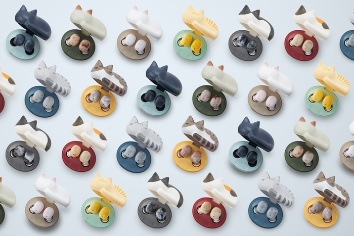 まるでお昼寝中の猫のような完全ワイヤレスイヤホンに、新しい柄が仲間入りしました。個性豊かな猫たちを、存分にかわいがってくださいね。