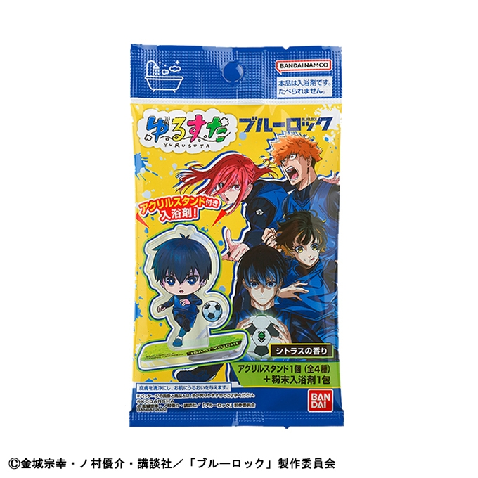 高さ約60mmの透明感のあるデザインがかわいいアクリルスタンドと入浴剤がセットの「ゆるすた」シリーズ。オリジナルSDイラストで、ラインナップは潔世一、蜂楽廻、國神錬介、千切豹馬の全4種。