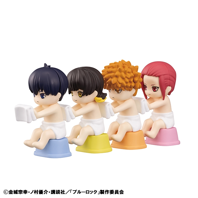 並べて楽しい「ふろとも」シリーズ。お風呂で仲良く背中を流しているチームZのルームメイトたちがフィギュアになりました。ラインナップは潔世一、蜂楽廻、國神錬介、千切豹馬の全4種。