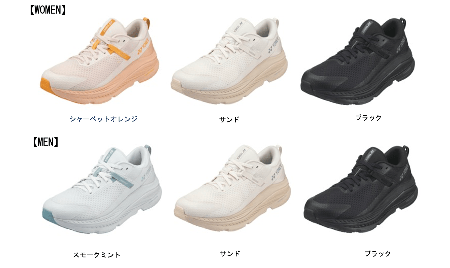 デザインは、ライフスタイルに溶け込む優しいカラーリングを採用し、男女ともに3色で展開いたします。フルマラソンやハーフマラソンの完走を狙うランナーだけでなく、日常のトレーニング、ジョグまで幅広くお使いいただけます。