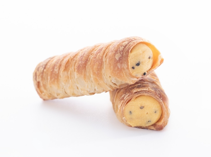 ・焼いもコルネ:今回の催事のために特別に作りました。会場で焼き上げたサクサクコルネに、上品な甘みで風味豊かな「鳴門金時」の焼いもクリームを詰めました。